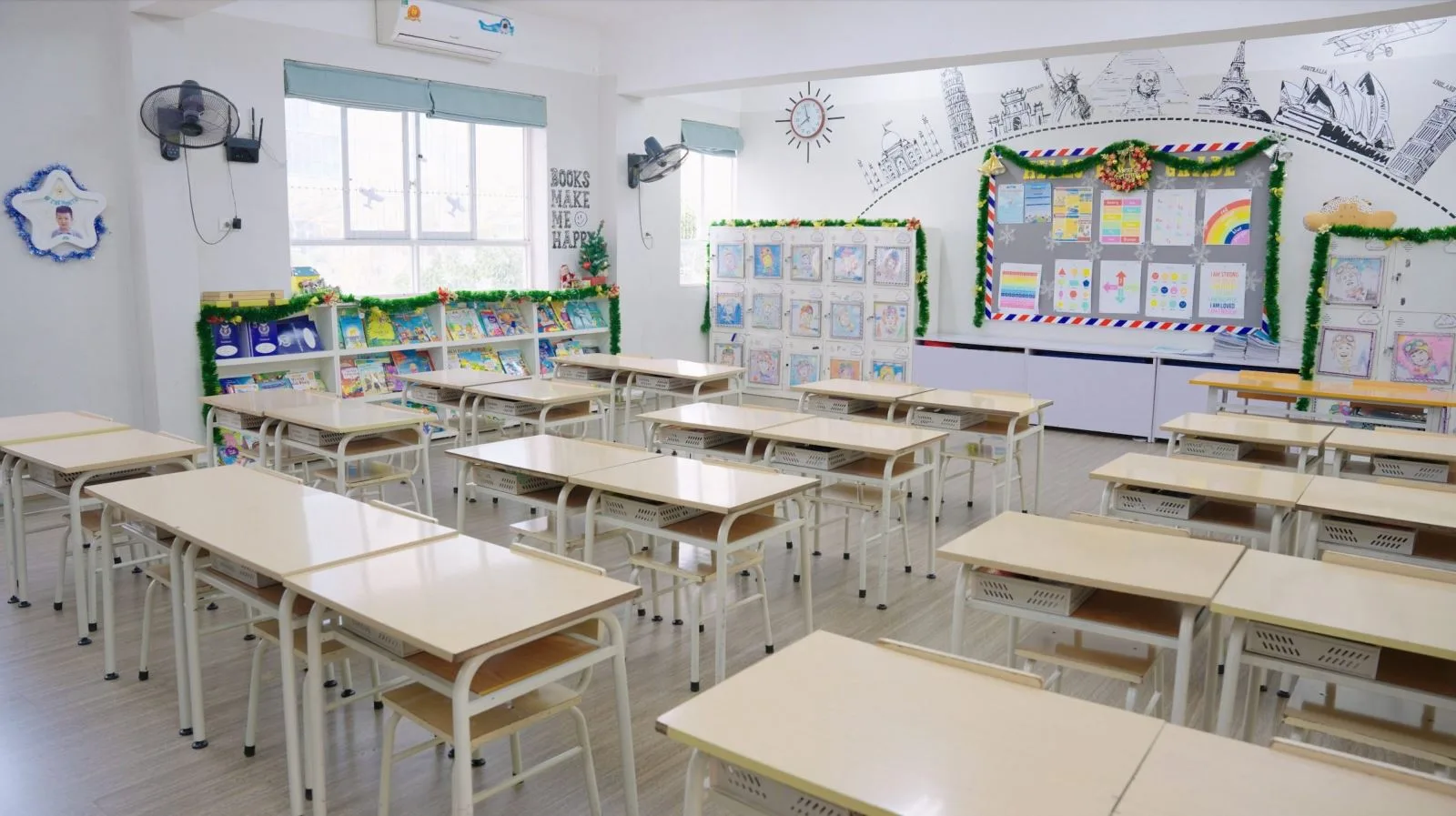Hệ thống phòng học rộng rãi, hiện đại, đầy đủ giáo cụ cho sự phát triển của trẻ. Chú trọng đầu tư các phòng chức năng như Phòng Âm nhạc, Phòng Art, Thư viện, Phòng thể chất, Khu vui chơi, thiết kế không gian kích thích trẻ khám phá, sáng tạo.