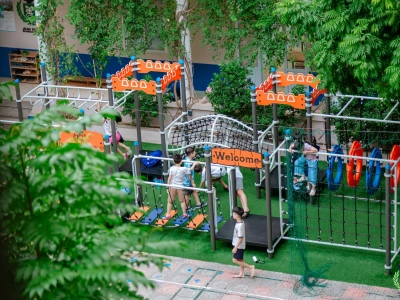3 khu vực sân ngoài trời rộng thoáng cùng với các khu vận động liên hoàn đáp ứng tối đa nhu cầu vận động và trải nghiệm của JPers.