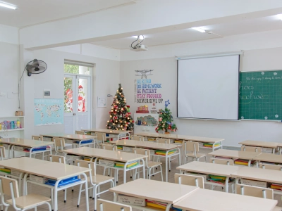 Jean Piaget có 25 phòng học đạt trên mức tiêu chuẩn của Bộ GD & ĐT với diện tích từ 55 – 70m2, phục vụ sĩ số từ 20 – 28 học sinh/lớp. Mỗi lớp học được trang bị: bảng chống loá, máy chiếu, điều hoà 2 chiều, tủ cá nhân, khi đọc sách… đảm bảo tiêu chuẩn học tập & sinh hoạt của học sinh. Không gian trong và ngoài lớp học tràn đầy ánh sáng tự nhiên cùng những khoảng xanh mát mắt, mang đến môi trường học tập đầy cảm hứng và nuôi dưỡng tư duy sáng tạo cho học sinh.